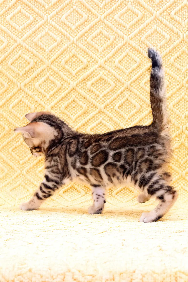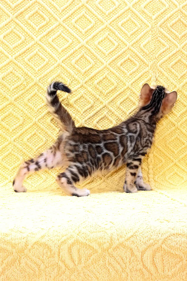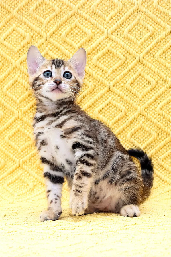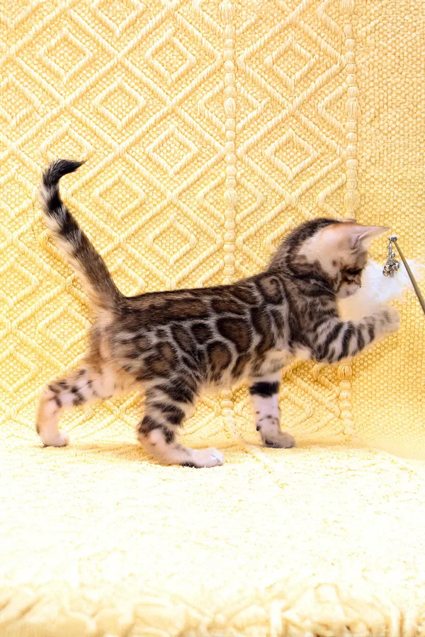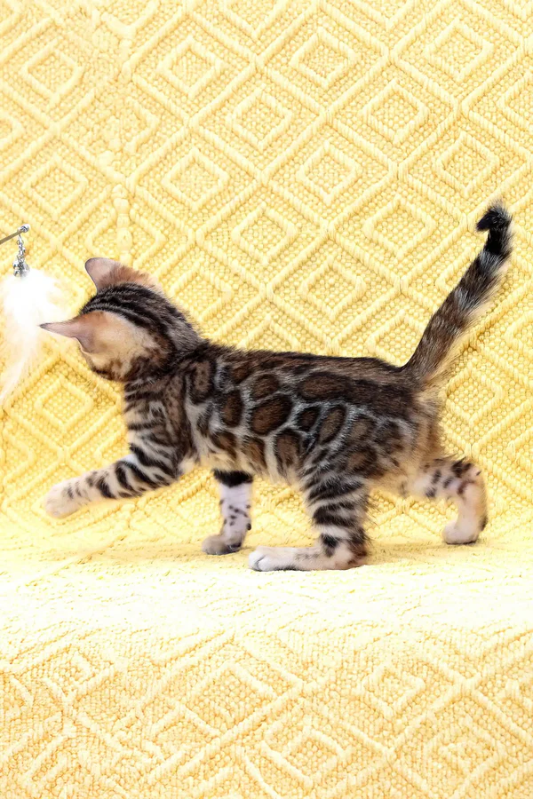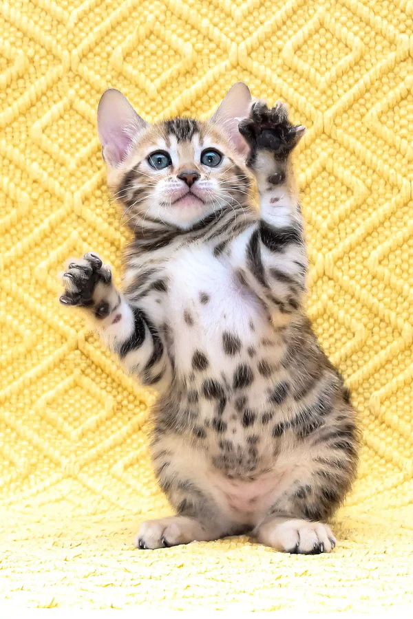 Buy bengal cat full of life, energy, and curiosity. My playful spirit keeps me constantly engaged—whether I’m pouncing on my favorite toy, leaping gracefully to explore new heights, or dashing across the room with excitement. But my love for adventure is matched by my deep affection for my humans. I adore being held, and my warm, friendly personality ensures that I will always be close by, seeking your attention and affection. My estimated adult weight is 7-12 lbs, and as I grow, I will develop into a sleek and athletic feline with an impressive presence. Raised on premium Josera Kitten and Optimeal food, I am thriving, strong, and full of vitality. I am also fully litter-trained, making my transition into your home effortless.