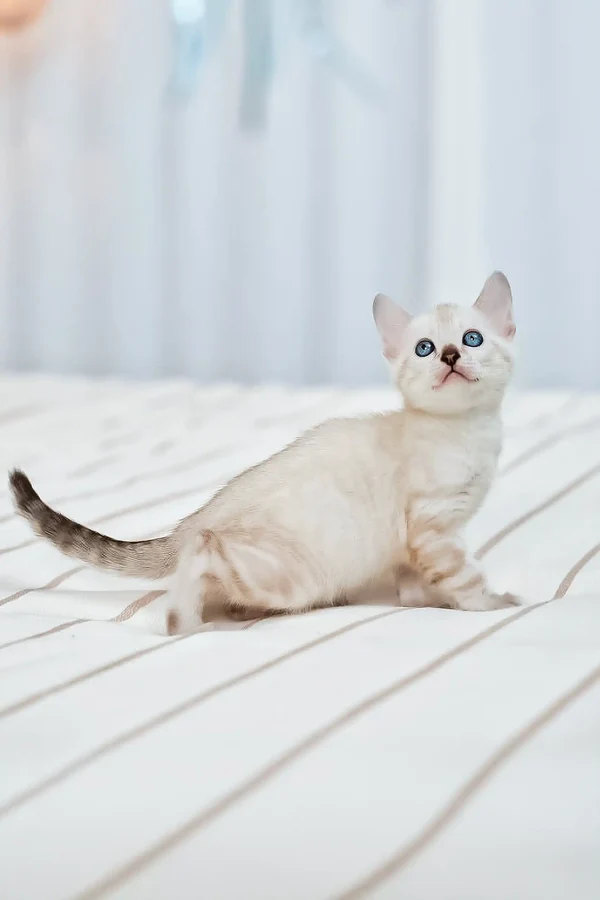 Hello, my name is Nov Fiona, and I am a rare and breathtaking silver Bengal cat for sale with a stunning lynx point coat and captivating blue eyes. My luxurious fur has a soft, silky texture that makes me irresistible to cuddle, while my unique lynx point pattern gives me an elegant and exotic look. I come from rare bloodlines with an excellent breed type, making me a true gem among purebred kittens. At just three months old, I am full of playful energy and affection, always ready to bring joy and excitement into your home.